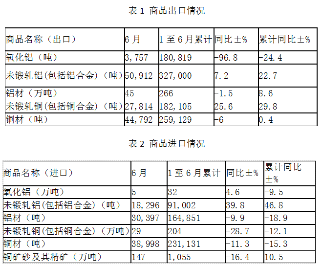 与此同时,中国6月氧化铝进口量为5万吨,较去年同期增加4.6%。