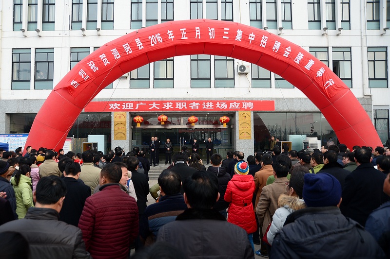 2月10日,正月初三,在全县上下共度新春佳节的美好时刻,泗阳县在开发区举行2016年“返乡就业创业?共建美好泗阳”企业用工集中招聘会,县委书记徐勤忠出席招聘会并致辞。县人大常委会主任王业珍,县政协主席夏养育,县委常委、江苏泗阳经济开发区党工委书记、县政府党组成员葛明,县人大常委会副主任、江苏泗阳经济开发区党工委副书记、县企业服务局局长葛习和等领导出席本次活动。