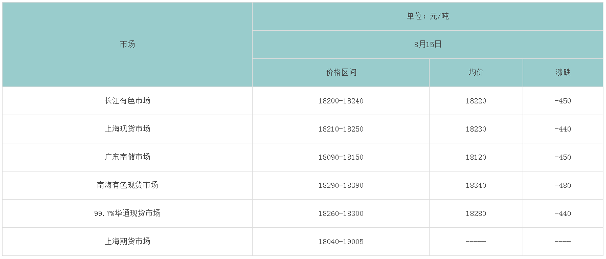 8月15日各大市场铝锭价格表